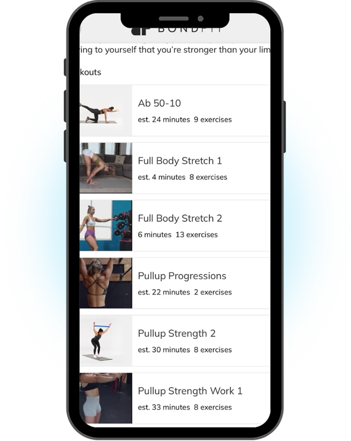 The BondFit App Access: Workouts delivered directly to your pocket.